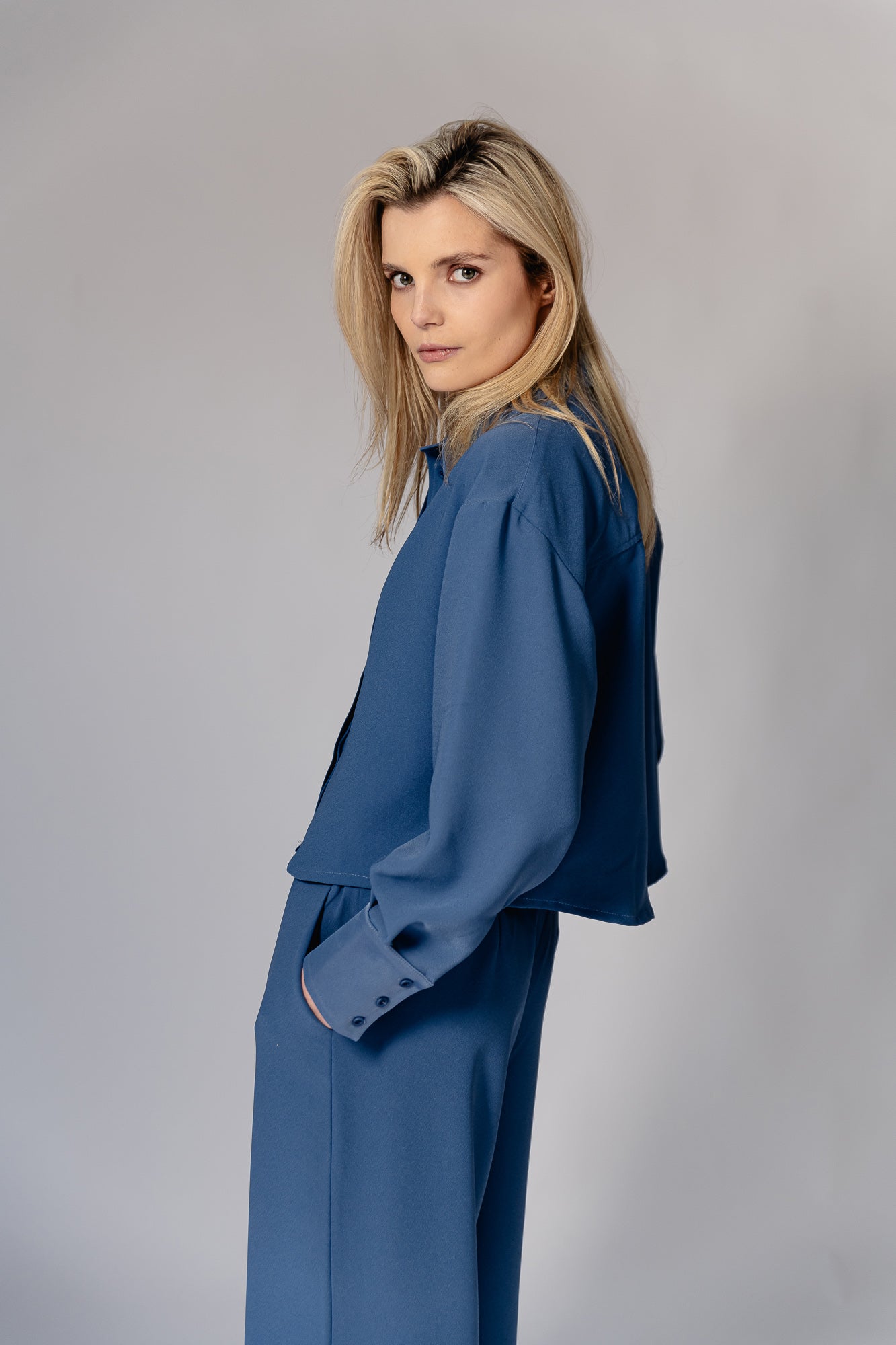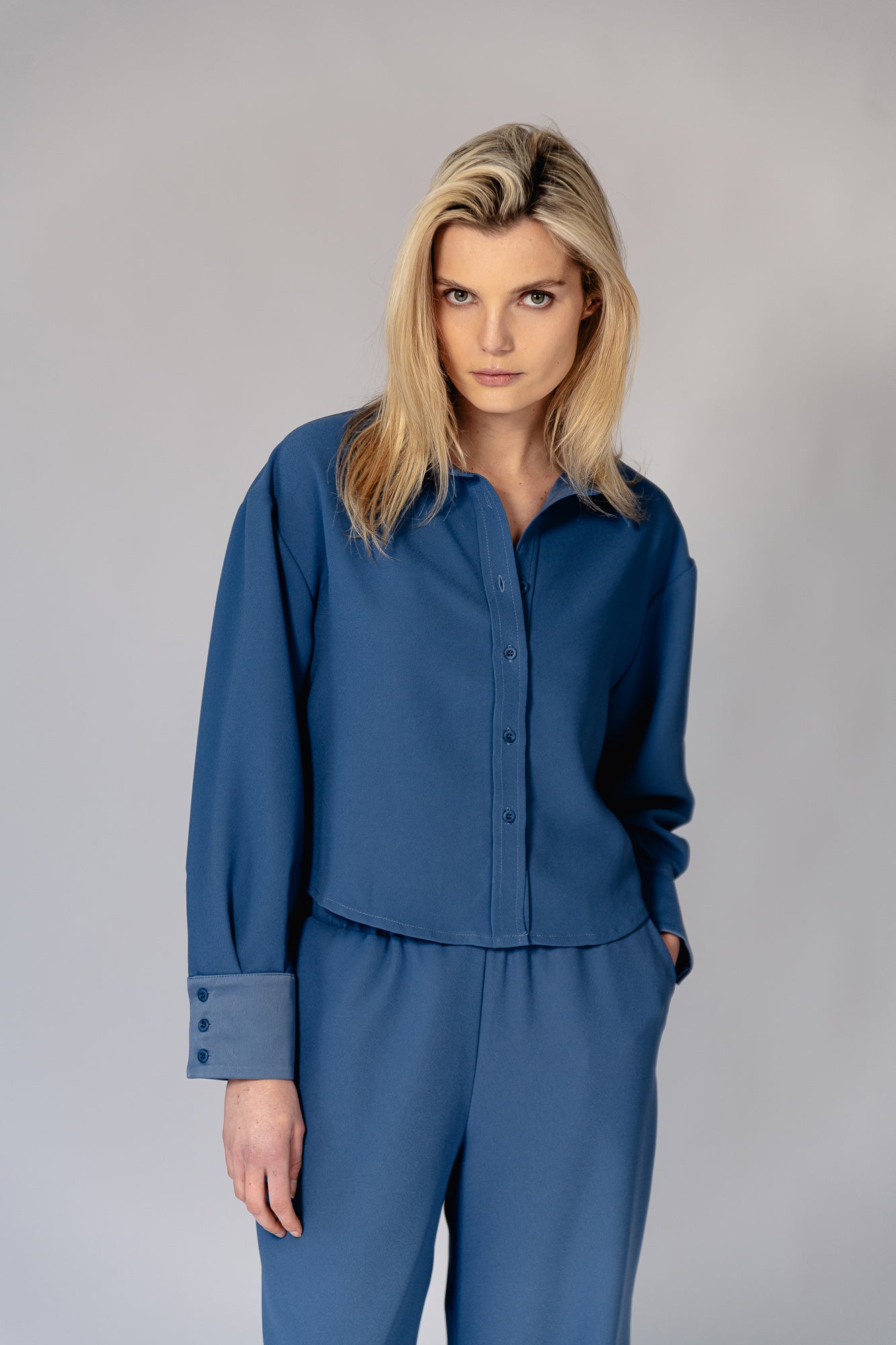Introducing our Marta blouse, featering a relaxed-fit, long sleeves and a stand-up collar. Paired as a set with our Luce pants. This stylish set offers a relaxed yet sophisticated look, perfect for any occasion. Shop the set for effortless style and comfort.