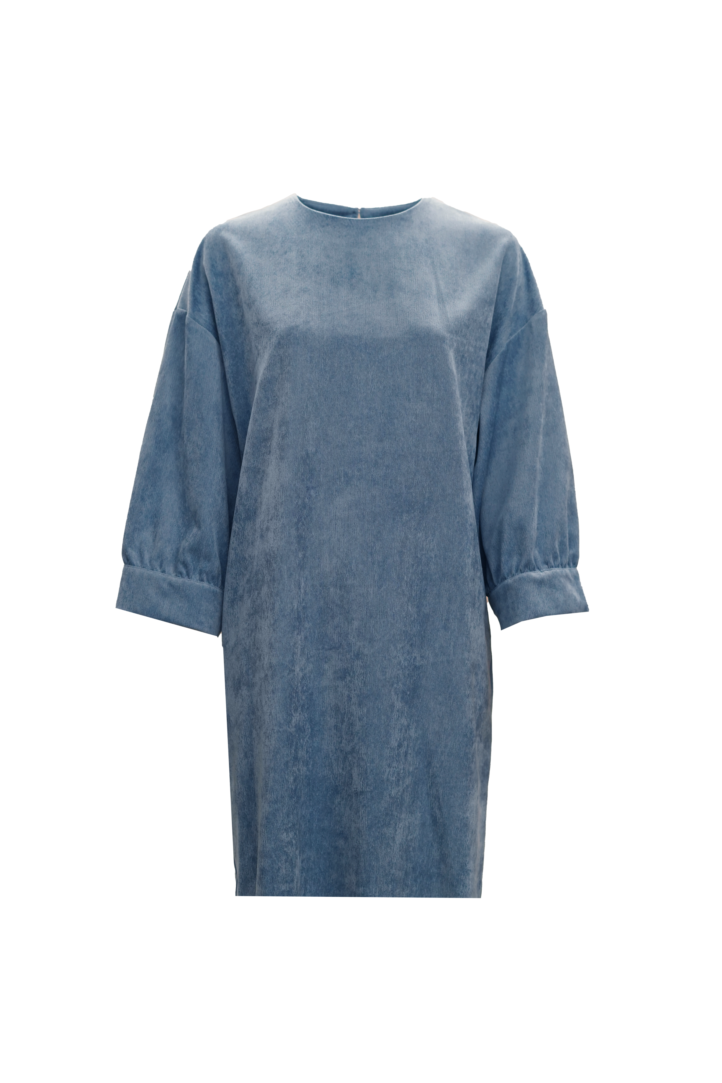 Our SIMONE is a blue mid-lenght dress with long sleeves, offering an elegant and stylish look for any occasion. Our model is 1m80 and is wearing size S. Composition: 85% Polyester, 13% Nylon, 2% Elastane